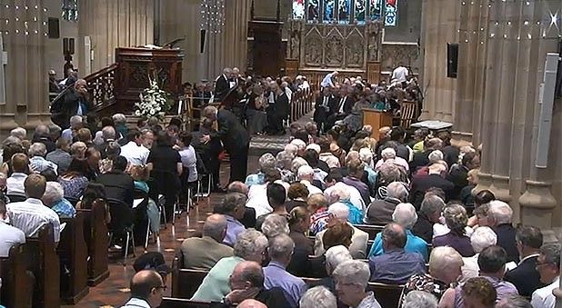 St Andrew's Cathedral was decorated with lights in preparation for Christmas services, but the packed congregation was not celebrating the season but the life of the 'great preacher of our generation'.