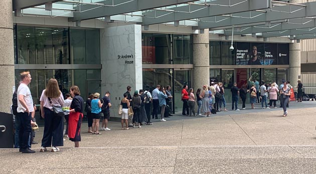 Archbishop Raffel also appealed for people to donate blood. There is a blood bank at St Andrew’s House at Town Hall, where queues of donors (above) have formed.