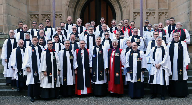The Primate, Archbishop Geoffrey Smith, the Bishop of South Sydney, Michael Stead, and dozens of clergy – many veterans themselves – watched as the Bishop to the Defence Force, Grant Dibden, read out the promises to be made by the new Archdeacon.