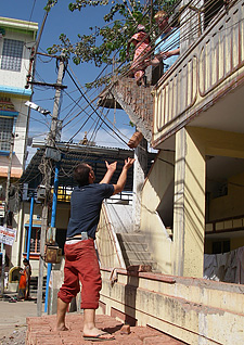 But it’s not all trials and tribulations here! Yesterday while Ben, Phil and Aaron were handing out leaflets for the Christmas service, and throwing up bricks on a construction site, they were hailed by a boy from a rooftop and told to come up and visit. So they did. They spent some time with this 16-year-old Hindu-born guy called Raj, who’s been expelled from school for fighting, and now runs with a local gang. That afternoon after their talk, he fell asleep while watching a movie and had a dream where a man told him to seek out Aaron and learn about his God. He had this dream three times, and not long after we found him standing on the steps of the Bride of Christ Church. He came in a chatted with a few of the guys for a while, and then came back again this morning after another dream. So for those following along at home, put up some words for Raj, Aaron and the rest of the boys as Raj comes to know the Lord.