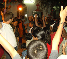 The song is about how we could sing of God’s love forever, and how much it fills us with joy. It was extremely liberating to actually get up and just dance with joy and excitement (our normal stance is the hands in the pocket thing :) Afterwards Lockie and I had a chat with the pink-shirted man who said that he’d been a Christian for three years, before which he was a Hindu, which gave us some hope for our young friend Raj. The Lord has continued to work in Raj’s life. He’s had another dream and came back to us again which was exciting. We prayed for him, and introduced him to the local boys " the Colonel, Pete, Anil and Johnny (the church deacons) who were able to assist more in terms of language, and also because Anil converted from a strict Hindu upbringing and Johnny and Pete used to run with street gangs. He wasn’t able to make it for the Christmas Spectacular event that we put on for the community, but please continue to pray for Raj as he’s got a rough road ahead of him.