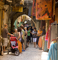 Our excursions into Jerusalem centred on some of the oldest parts of the city. Israel has straddled some of the most important trade routes in the Middle East for millennia. As a consequence Jerusalem's markets have always been home to the most incredible tastes, smells, attractions and innovations. One of the crew was a little disappointed that the city didn't conform to his idea of a more traditional eastern bizarre. But that would not have been Jerusalem. I look at some of the fashions in footwear here and laugh " then remind myself that I will be seeing them in Sydney stores in two years time.
