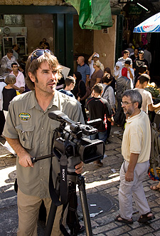 The last two days of filming have taken us deep into the heart of Jerusalem, the Holy City. I'm quite privileged to be working with a very experienced crew that has become quite experienced with working in Israel over the past decade. Probably the most disturbing element of this new production, though, was the decision to dispense with a guide. Instead, I was given the job of navigating us around this ancient city. Now I will admit that this is my sixth documentary in Israel. However I must admit I felt more than a little apprehensive about leading the crew out into the back alleys of the Old City. It was very much like taking dad's car out on your own for the first time.