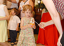 The activities: St James' senior assistant minister, the Rev John Stewart gave a children's talk about Jesus as the meaning of Christmas. The children's choir led the congregation in singing carols. Near the end of the service each child is given a "Christingle' and follows the clergy in a procession around the church.