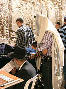 Two days ago in our walk around the Old City, we visited to the Western or Wailing Wall. To our surprise we gentiles were able to go right up to the wall and mix with the orthodox Jews saying their prayers. Curiously, we were unable to go to the Dome of the Rock on Temple Mount just behind the wall, as our tour guide could not guarantee our safety. At the Wailing Wall, ladies are separated from men, something we might look into back home, but the dress code, and rocking during prayers is unlikely to quickly be adopted. The Jews have a practice of writing their prayers on paper and sticking them in the cracks in the wall. It is said that when the papers fall to the ground God has answered their prayer. While it was easy to appreciate the significance and attraction of the wall to Judaism " we came away thankful for the open access to the Father we have through the Son.