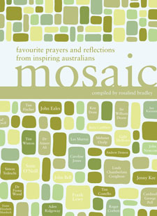 Mosaic is a collection of favourite prayers and reflections chosen by contemporary Australians from differing backgrounds and faiths. It features selections by a very broad range of Australian contributors including author Tim Winton, counsellor and author Petrea King, founding director of the Fred Hollows Foundation Gabi Hollows, Wiggles member Anthony Field, philosopher Professor Peter Singer, composer Peter Sculthorpe, chef Charmayne Solomon, Rabbi Jacqueline Ninio, president of the Muslim Women’s National Network Aziza Abdel-Halim, Lindy Chamberlain-Creighton, who was unjustly accused of murdering her baby, TV presenter Andrew Denton and many more.