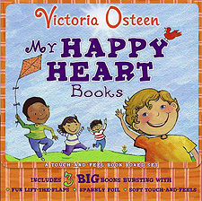 I must confess an important bias. I am a sucker for books with textures. Give me an embossed cover and I just have to run my fingers over it, so books featuring an abundance of different textures are a treat indeed. Victoria Osteen's touch-and-feel boxed set of three My Happy Heart Books offers fur, felt, sand, wool, and other smooth and bumpy delights. Some are obvious and others are subtle and need to be "felt' out.