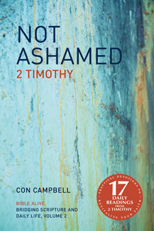 Not Ashamed seeks to encourage the believer to live a life of righteousness. Con Campbell has pulled out themes from 2 Timothy to create 17 daily reflections for use in personal devotions or with a group of Christians wanting to exhort one another to run the good race.