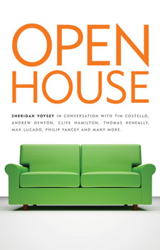 In Open House Voysey interviews and records, from his Australian national radio program on Sunday evenings, a number of reflections and discussions with authors, artists and activists. This pastiche includes interviews with Marina Prior, Thomas Keneally, Philip Yancey, Andrew Denton and many more.