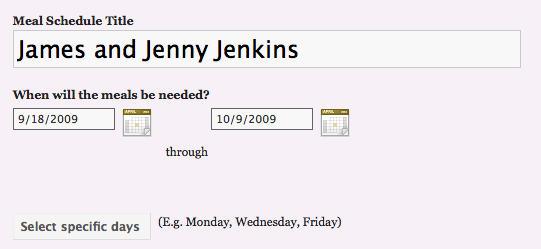 6. Once the schedule has been created, you can share a link with others that they can click on to 'sign-up' for which meals they would like to cook. Take a look at an example of what this sign-up page looks like.