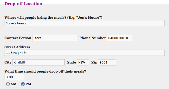 4. Add details of where and when the cooked meals should be delivered to: