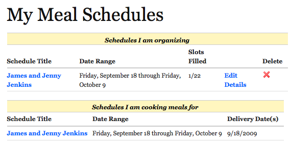 7. It's easy to see which meals you have agreed to cook, and when you agreed to cook them, along with any schedules you are organising: