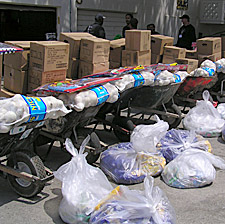 On Saturday morning I boarded a DC bus to join their Adopt-A-Block Ministry to a poor area of LA. We had a good hour of fervent prayer and a little preparation before we were allocated to different regular teams. We arrived at the designated spot to see people already lined up and waiting for us. This is a ministry by a dedicated team of church members and other volunteers which each Saturday morning takes barrow, truck and busloads of food and other gifts to areas that they have "adopted".
