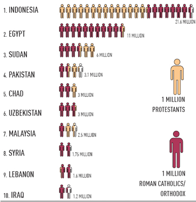 Over 60 million nominal Christians and over 20 million Protestants live in Muslim-majority Nations. Here are the top 10 Nations.