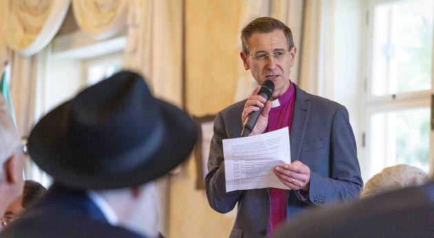 Above: Bishop Stead speaks to faith leaders about their joint initiatives