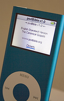 Best of all, it’s free. A deal done with Good News Publishers means that you can download this version without infringing any laws or your own copyright sensibilities. Better still, you can pass it on to your pod-equipped friends and family as fast as you can copy a site link to an email. And the producers of podBible are giving away their own technical framework as well; they even have a polite note discouraging donations because they believe the work itself is worth doing and they don’t wish people to confuse their motives. They are happy to receive technical and hosting support should people like to support the project.