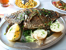 From there we headed out on to the lake in a chartered boat. The idea was to film a fairly normal piece to camera with John describing Jesus' stomping grounds for the viewers. This, however, was when the weather really hit hard, a wind channelled by the surrounding hills whipping up the water so that the lake became full of white-capped waves. It necessitated a sudden change in the script so we could refer to the "sometimes stormy Sea of Galilee' but in the end it made for much more interesting watching. Happily, no-one had to fish the host out of the drink.