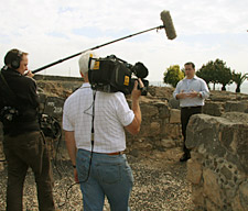 Our first location underlined the point. Arriving in Tiberias on the shores of Lake Galilee, we lost little time in heading to the base of Jesus' ministry in the north " Capernaum. The clouds were ominous but we were spared any down-pour. Israel's Ministry of Tourism had provided invaluable support in helping us gain access to the site for our cameras, but it appeared that a local official was prepared to throw a spanner in the works by insisting we remain behind barriers erected to contain the general public. I have never talked so fast and prayed so hard in my life, but by God's grace and a persistently friendly approach that left my cheeks aching from smiling, we were able to turn our sticking-point into a supporter. By the end of our negotiations our host, John Dickson, was given the sort of access to the ruin's of Peter's home town that I have never seen granted before.