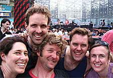 4pm. Everyone's up. We're standing. Why? Nobody knows. Gates don't open until 5:30pm?! The orderly queue is now a mob and we're already standing inside one of six "cattle runs' where security stands ready to check bags.