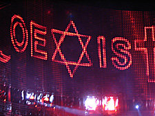 During Sunday Bloody Sunday Bono exhorts the crowd to "coexist', but the song's final coda is brutally interrupted by the hellish howling of Edge's guitar on Bullet the Blue Sky. This is a song that was originally written in criticism of US foreign policy back in the 1980's. Consequently, Bono's earlier exhortations for Christian, Jew and Muslim to "coexist' are now poignantly juxtaposed with the root causes of terrorism.