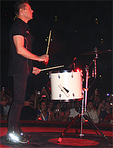 Larry's down at the B-stage playing a floor tom that Bono will later unleash his rage upon for Love and Peace. (I have no idea how Larry manages to keep time out there). The song calls for an end to some epic conflicts: