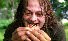 Gollum chose his own damnation when he took the ring. The ring exerted power over him, and tempted him, but Gollum's choice to begin his ownership of it by theft and murder made its domination of him worse. Nevertheless, even though the original creature was already sneaky and treacherous, there is the hint that Gollum could be redeemed into something good, if he chose. He even argues with himself over it, the good Smeagol arguing against the evil Gollum. Frodo sees the possibility for redemption in Gollum, even if Sam does not; and there is a point where we see the genuine desire for goodness as Smeagol looks at the sleeping Frodo. But he is not strong enough, or the desire for goodness is not strong enough. He chooses to be Gollum, and betrays Frodo, even though ironically in doing so he saves Frodo and Middle-earth.